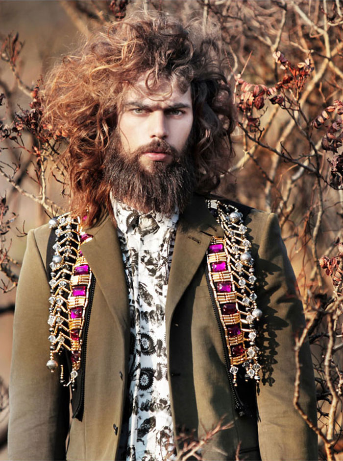 In this editorial captured by Marcos Domingo Sánchez, for CHAOS magazine the bearded warrior is styled by the amazing Visori Fashionart.